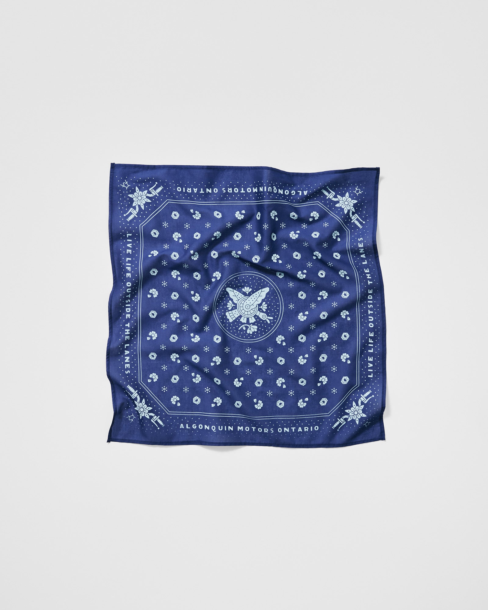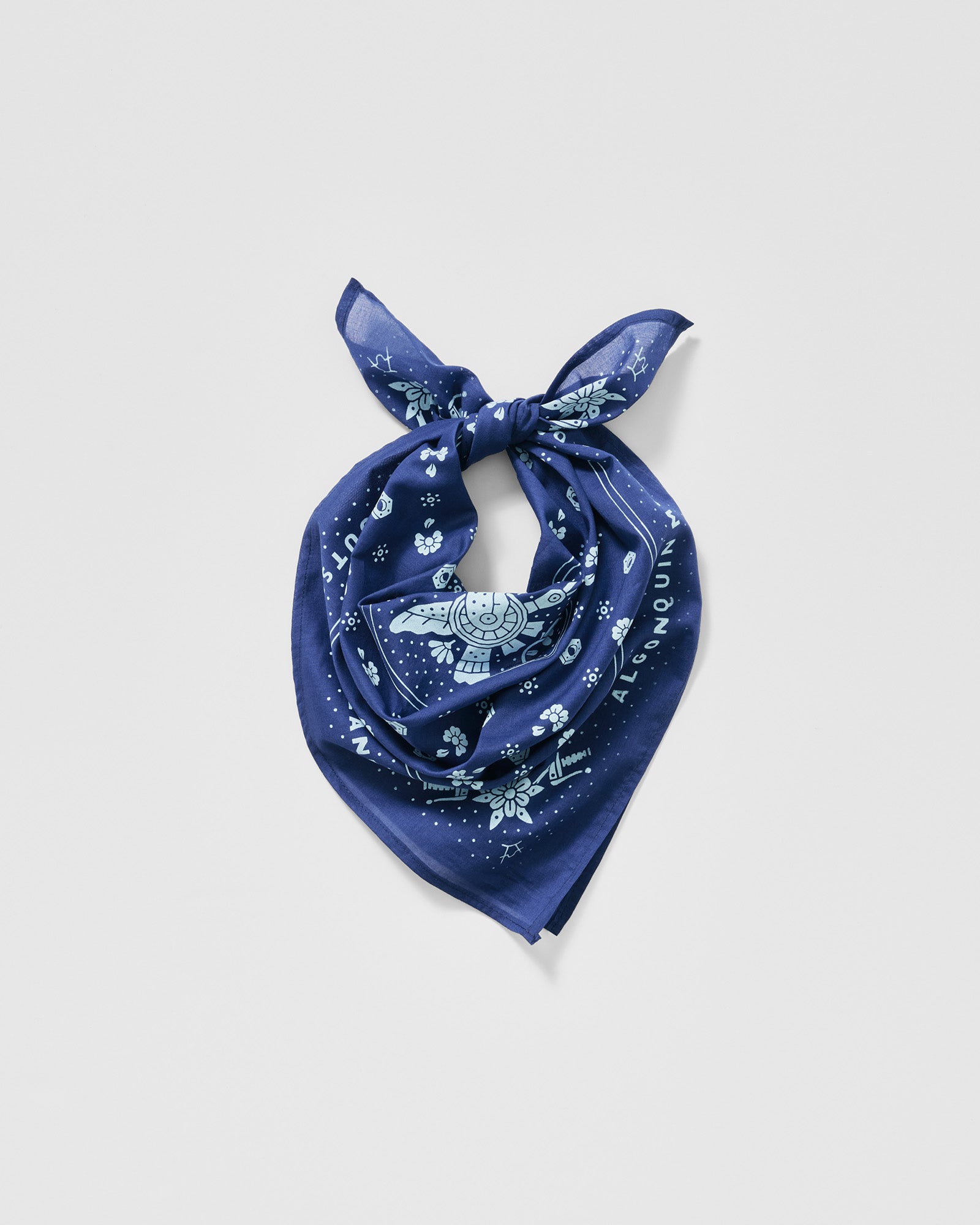 This bandana features the Mallard, commonly seen across the Algonquin Region. Its deep navy hue a nod to the vibrant blue flashes on their wings. Male mallards have iridescent-green heads and white collars, while females are a little less flashy with a beautiful and subtle pattern of brown and tan all over.